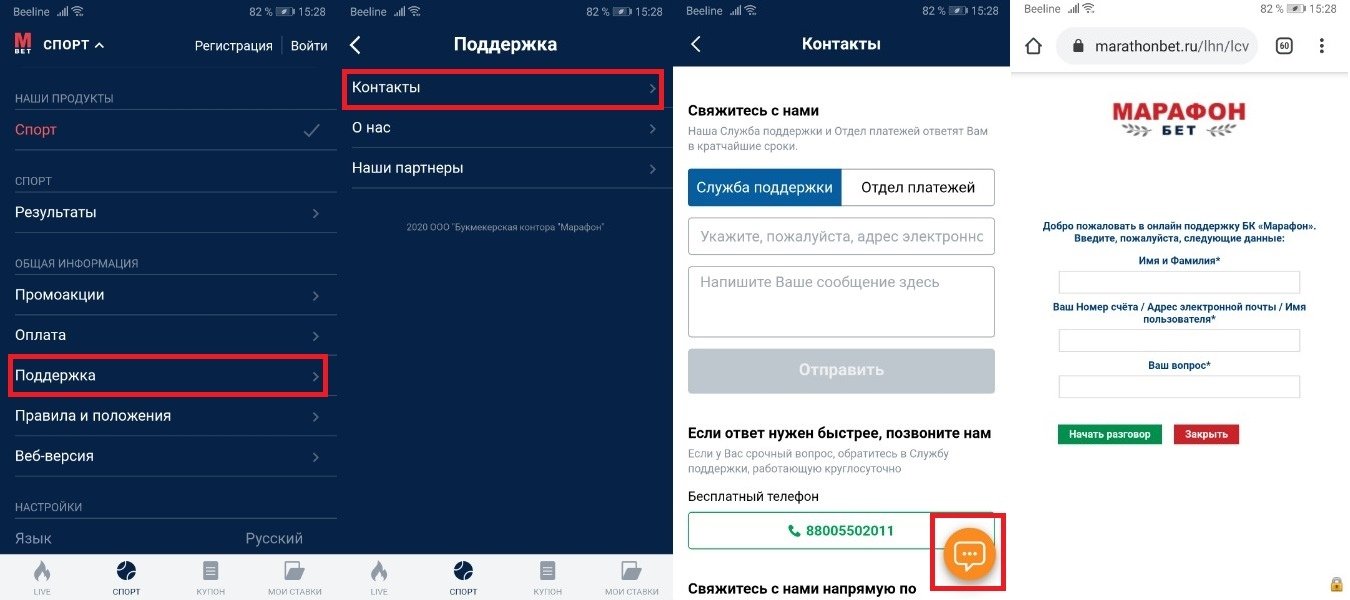 Как связаться с техподдержкой «Марафон»