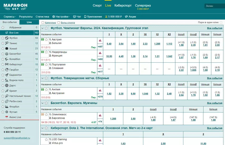 Линия и глубина росписи у обеих витрин БК одинаковые. Нет существенной разницы в промоакциях и бонусах. Поэтому у игроков из РФ нет значимых причин пользоваться международной витриной и искать рабочее зеркало Марафон.