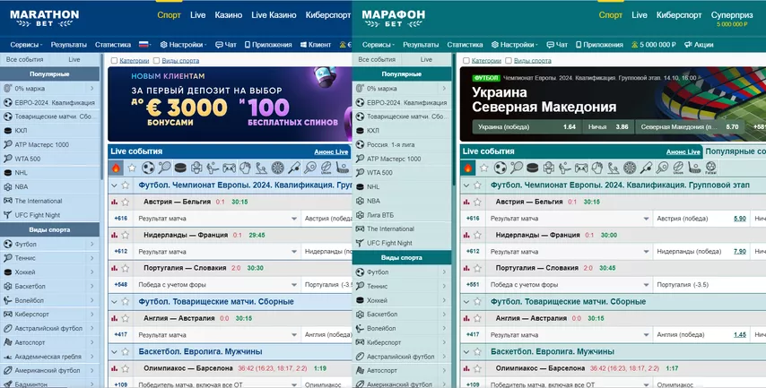 - Офшорная витрина поддерживает множество языков. Сайт БК «Марафон» в зоне RU работает только на русском.