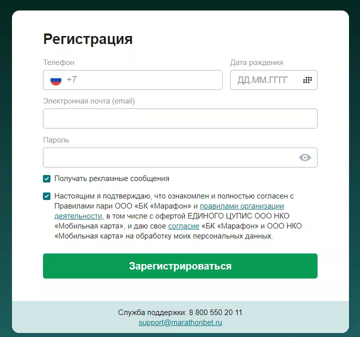 Как стать клиентом БК Марафон
